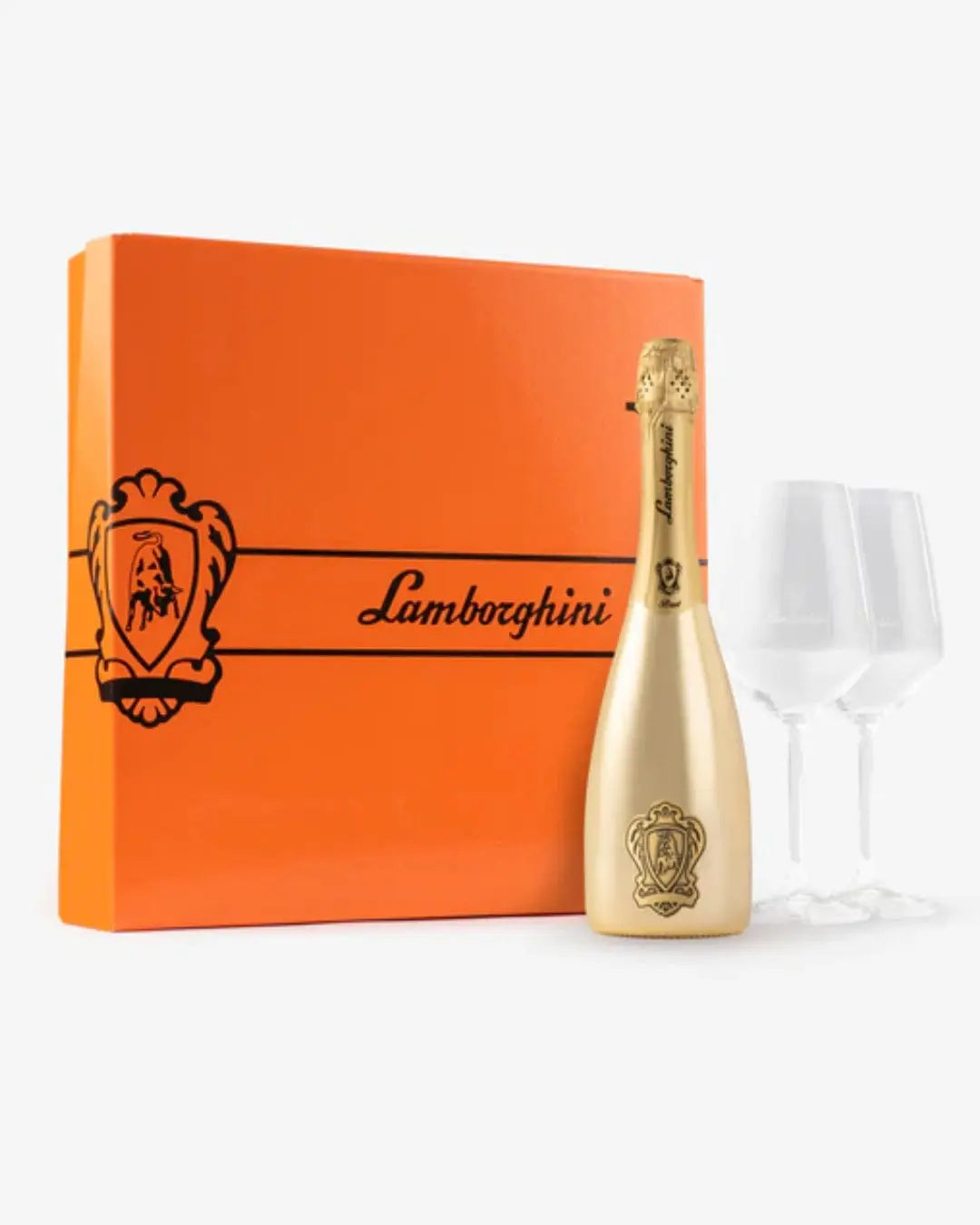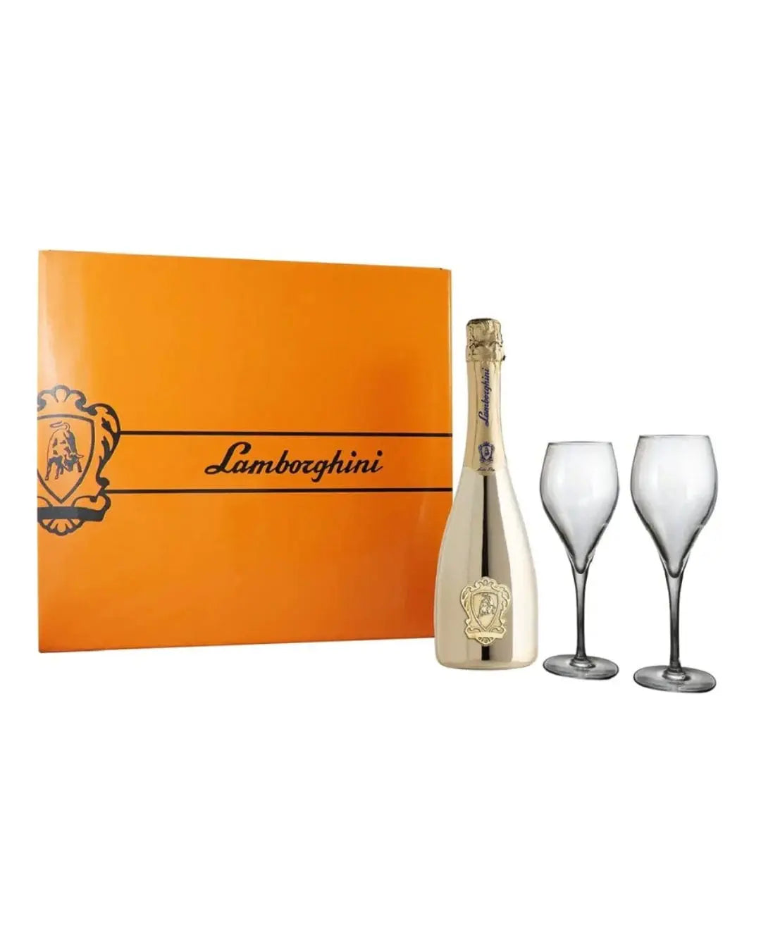 Lamborghini Gold Brut Sparkling Wine Gift Set With 2 Crystal Glasses, 75 cl