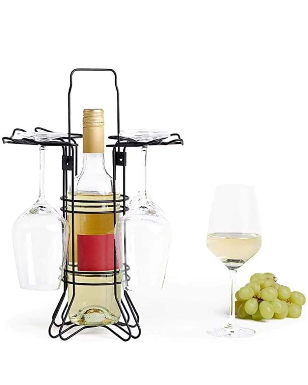 EXCLUSIVE VONSHEF DESIGN – a clever combination of style and practicality, this sleek black powder-coated carry stand is designed exclusively by VonShefOUTDOOR & INDOOR USE – carry to the park and set it down at your perfect spot, or simply keep it in the kitchen to have your wine and glasses ready for servingCARRY & STAND – freestanding glass and bottle holder with handle for easy one-handed transportationDIMENSIONS – H29cm x D30cm. Wine glasses & bottle not included